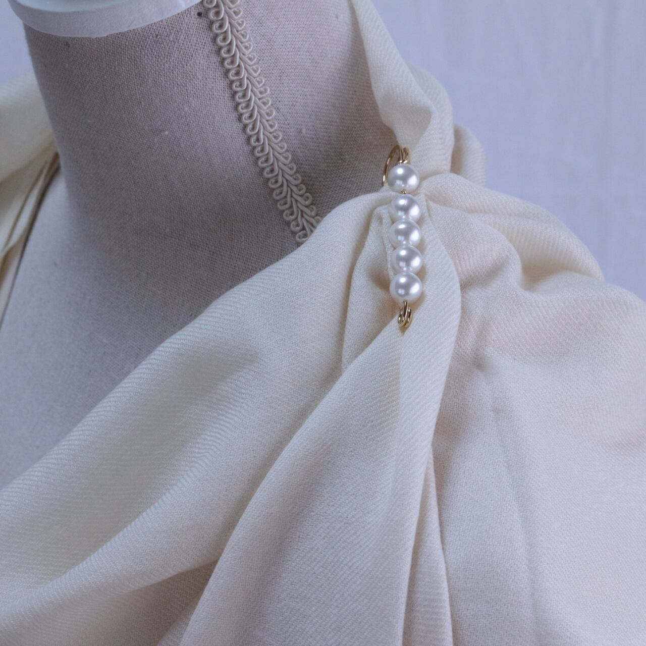 ストールを首に巻き付けて軽く固定したり、着流しのカーディガンのフロントを留める際にも使えます。